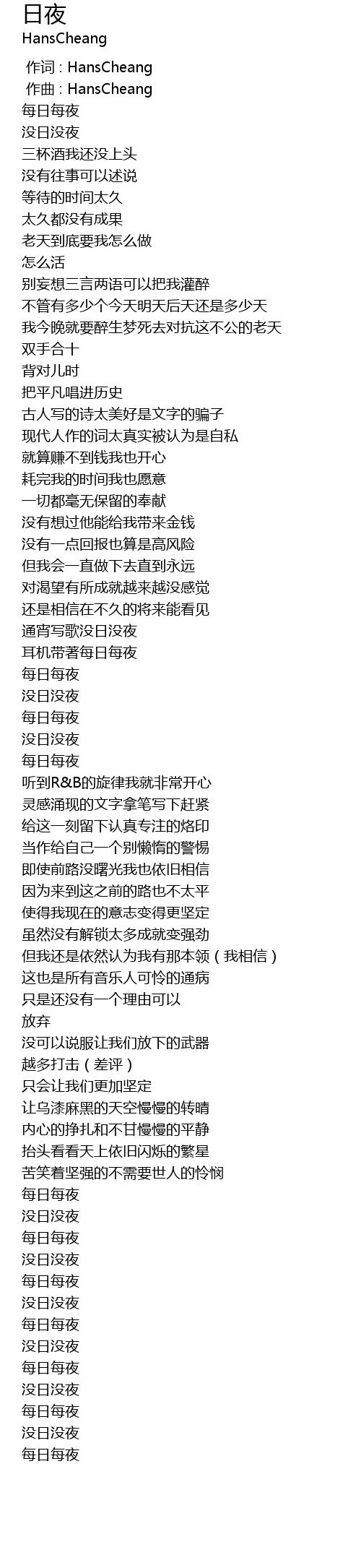 | [00:00.000] | 作词 : HansCheang |