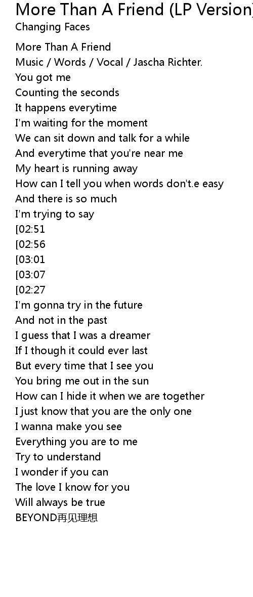 | [03:31][02:27][01:20] | That I'm more than a friend |