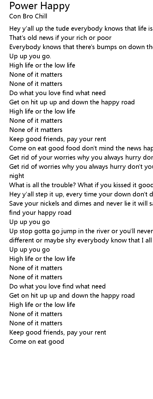 Up stop gotta go jump in the river or you'll never know don't care if your different or maybe shy everybody know that I all they want is happy road |