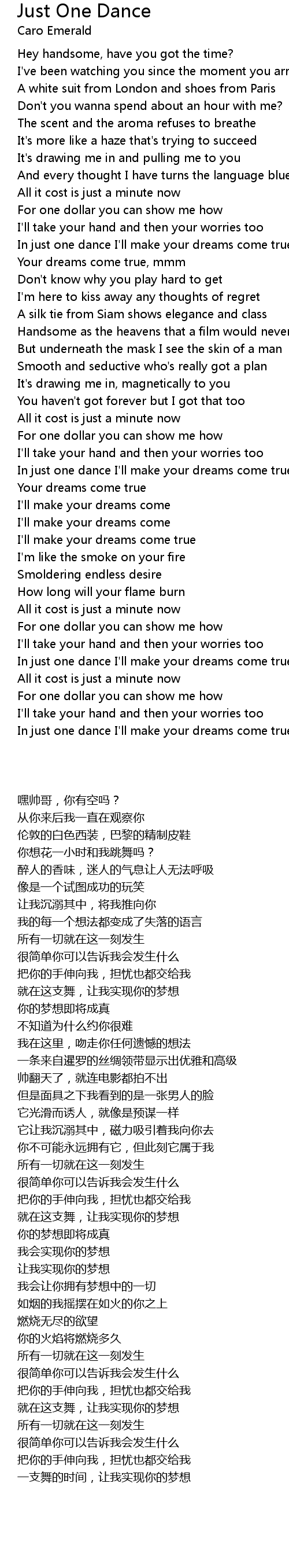 In just one dance I'll make your dreams come true |