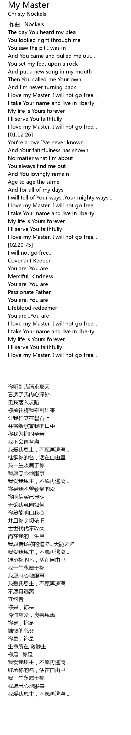 | [00:44.00] | I love my Master, I will not go free... |