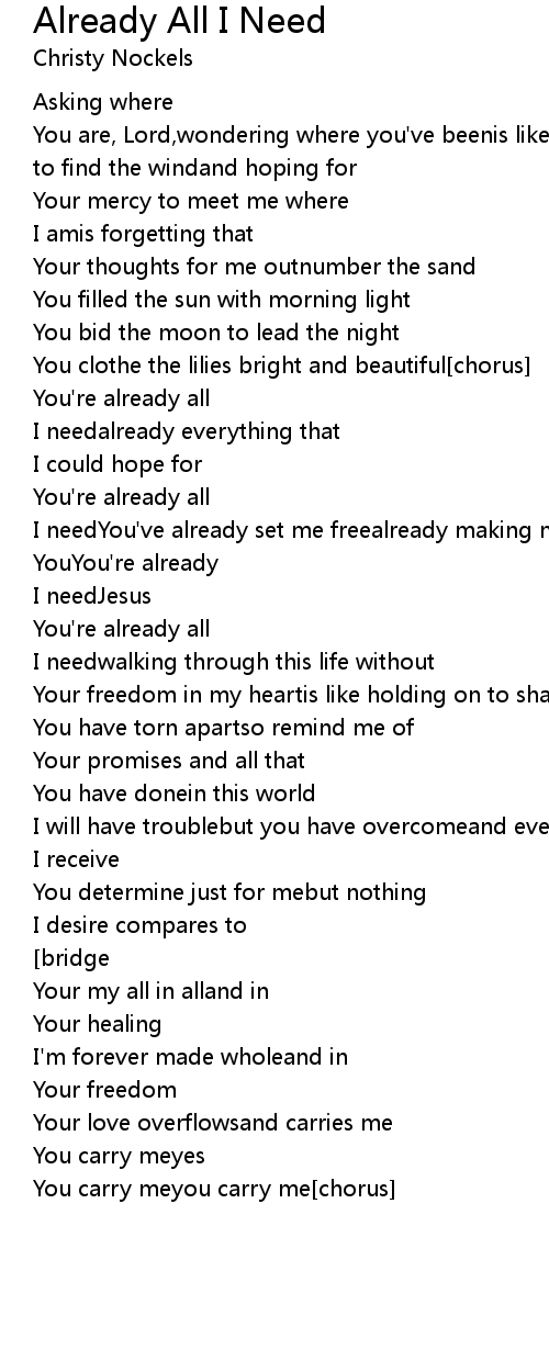 I needYou've already set me freealready making me more like |