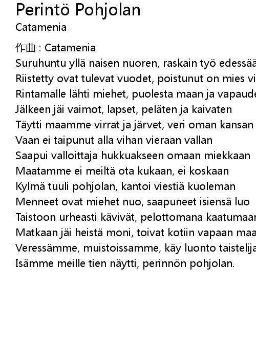 | 歌曲 | Perintö Pohjolan |