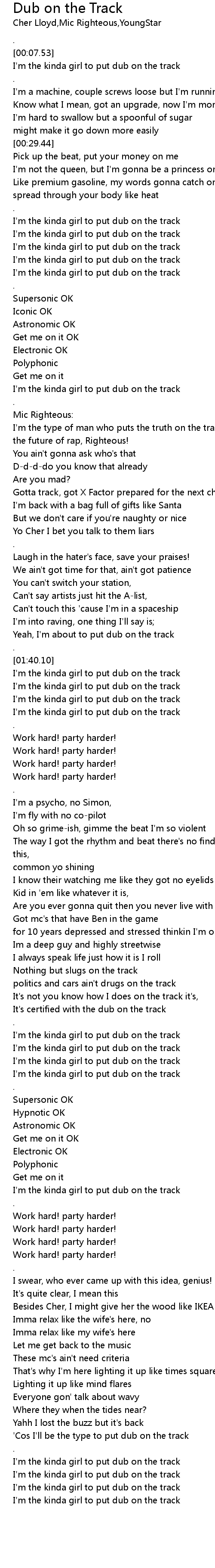 I'm the kinda girl to put dub on the track |