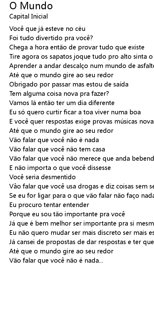 | Tire agora os sapatos joque tudo pro alto sinta o chão | |