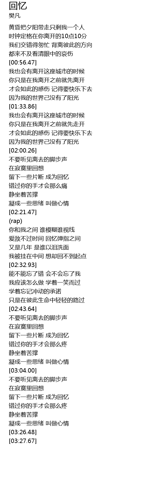 | [03:10.10] | 留下一些片断 成为回忆 |