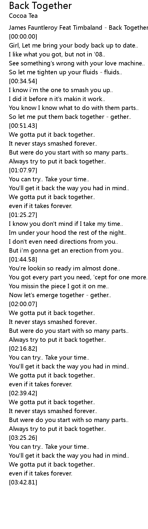 James Fauntleroy Feat Timbaland - Back Together |