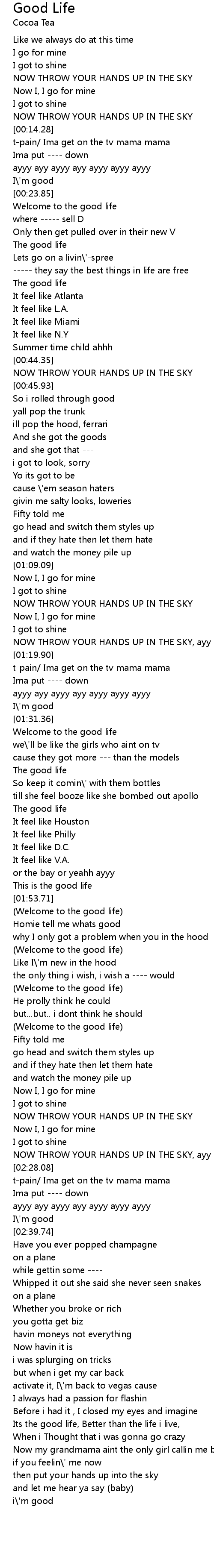 | [03:02.86] | Its the good life, Better than the life i live, |