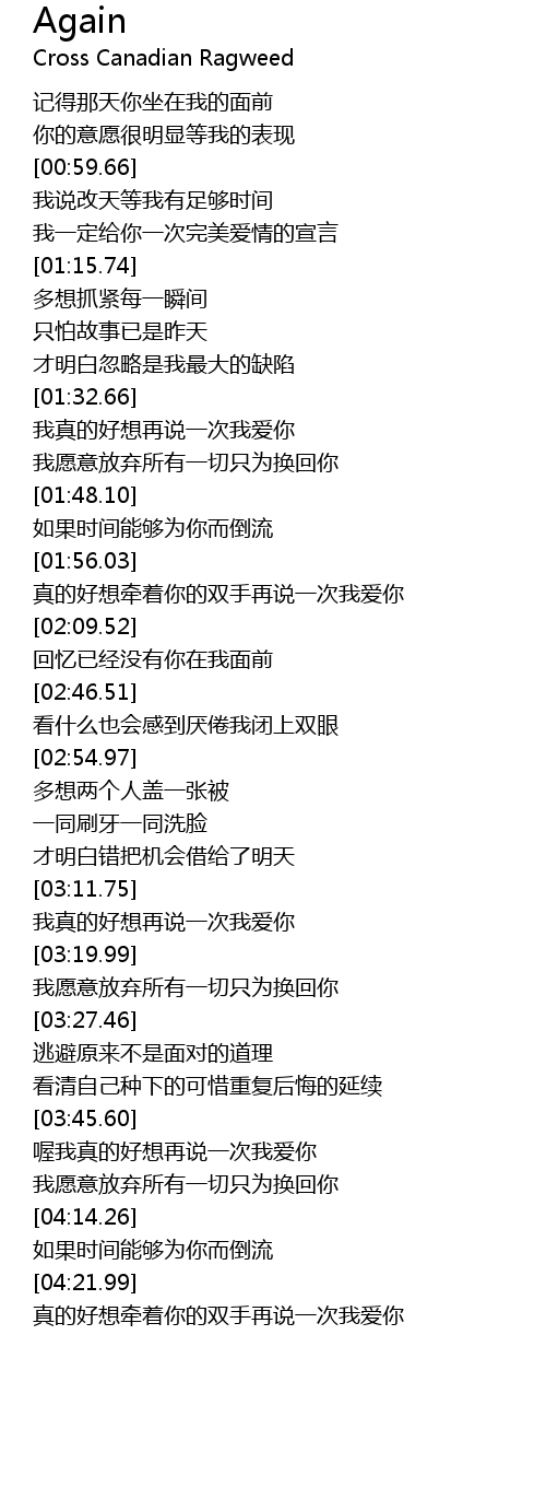 | [03:59.69] | 喔我真的好想再说一次我爱你 |