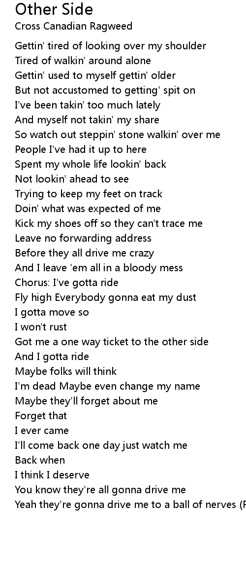Got me a one way ticket to the other side |