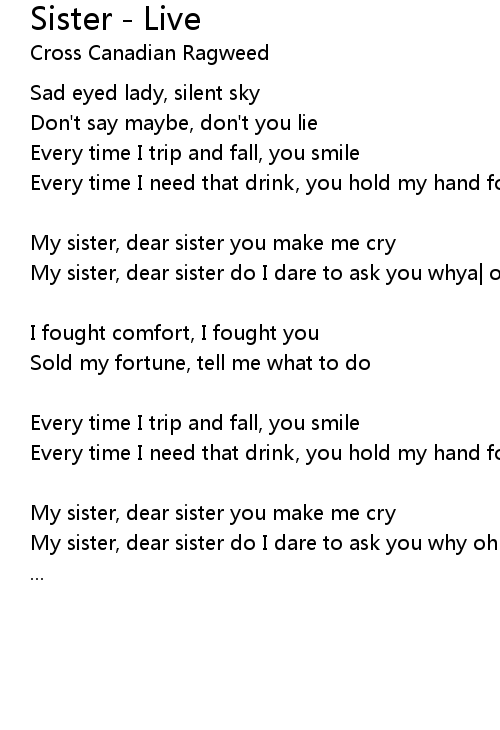 My sister, dear sister you make me cry |