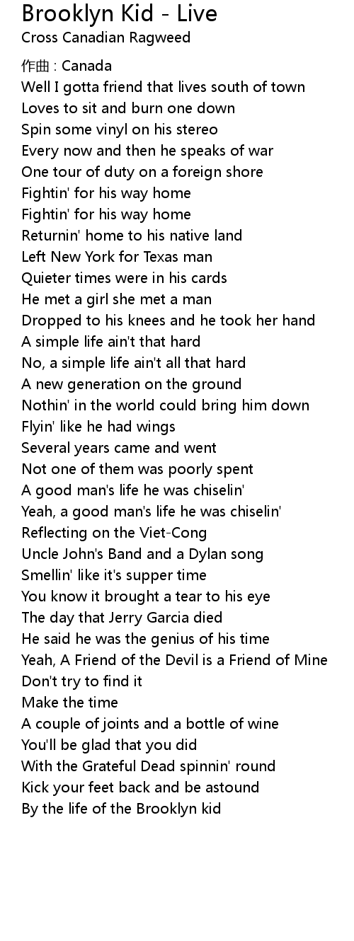| 歌曲 | Brooklyn Kid - Live |