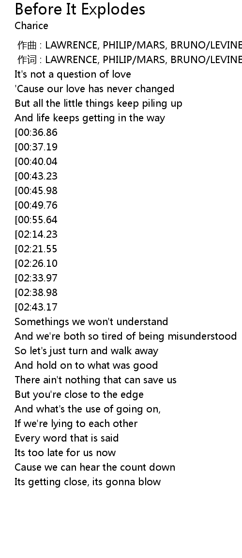 | [00:01.00] | 作词 : LAWRENCE, PHILIP/MARS, BRUNO/LEVINE, |
