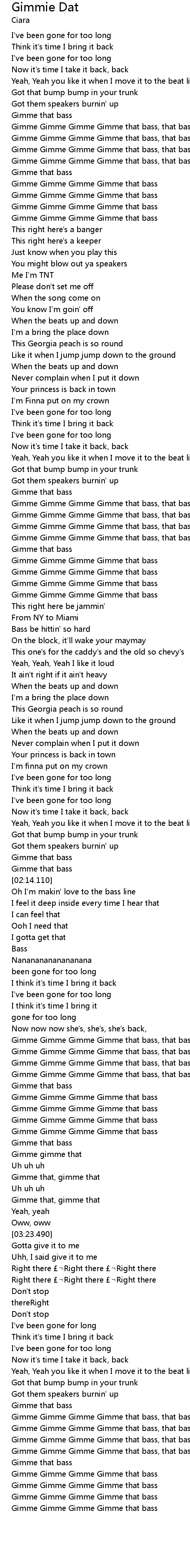 | [03:55.110] | Gimme Gimme Gimme Gimme that bass, that bass |
