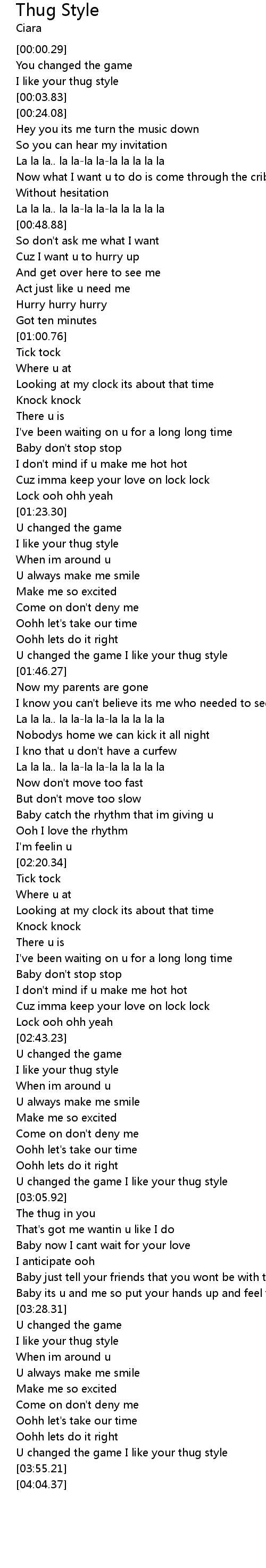 | [03:01.22] | U changed the game I like your thug style |