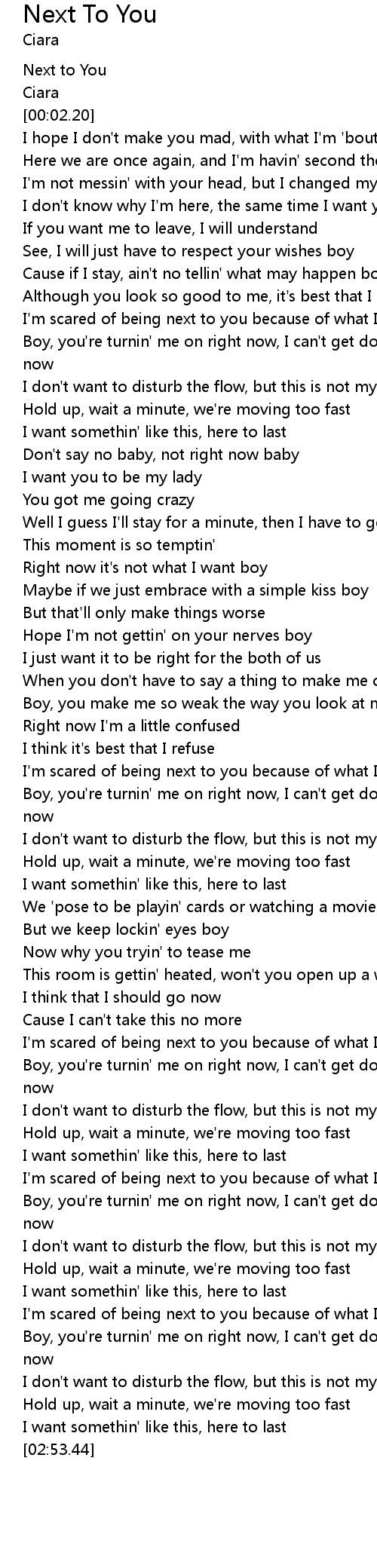 | [00:34.44] | I'm scared of being next to you because of what I think I might do |