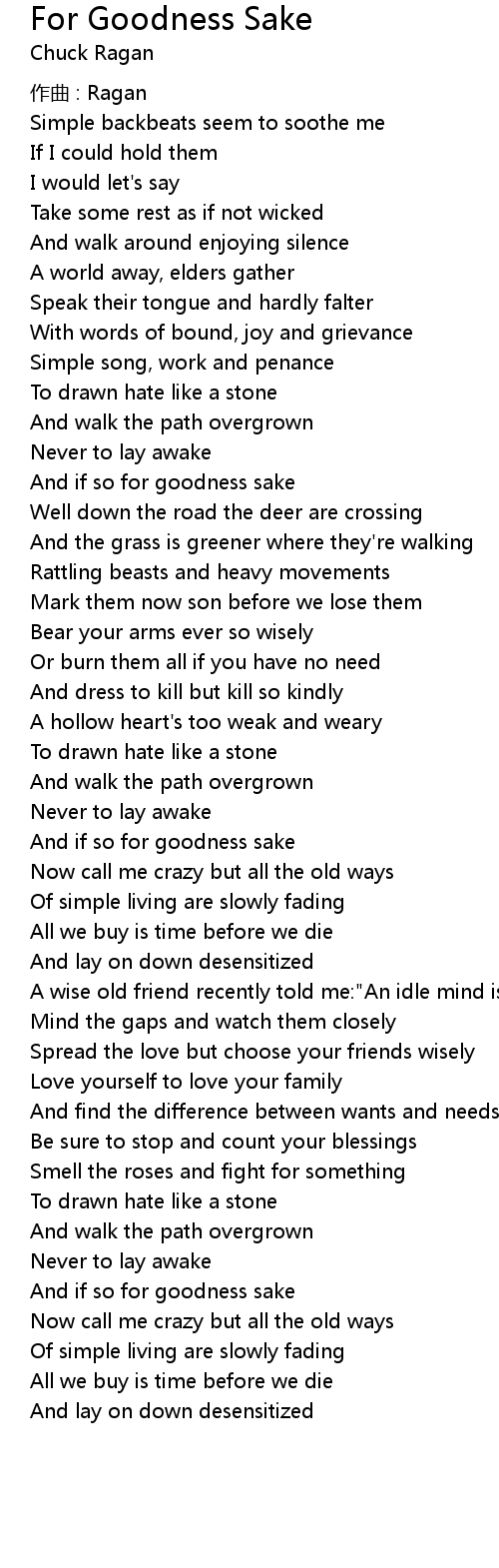 | 歌曲 | For Goodness Sake |