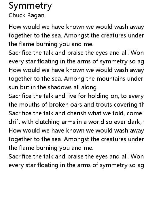 How would we have known we would wash away. It's two solemn searching souls together to the sea. Among the mountains underneath the deepening. Rising to the sun but in the shadows all along. |
