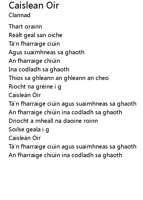 | 歌曲 | Caislean Oir |