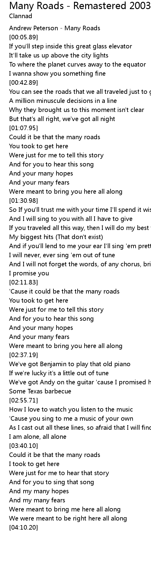 | [00:01.12] | Andrew Peterson - Many Roads |
