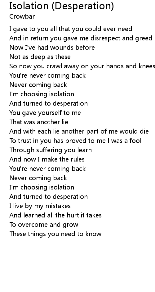 I'm choosing isolation |