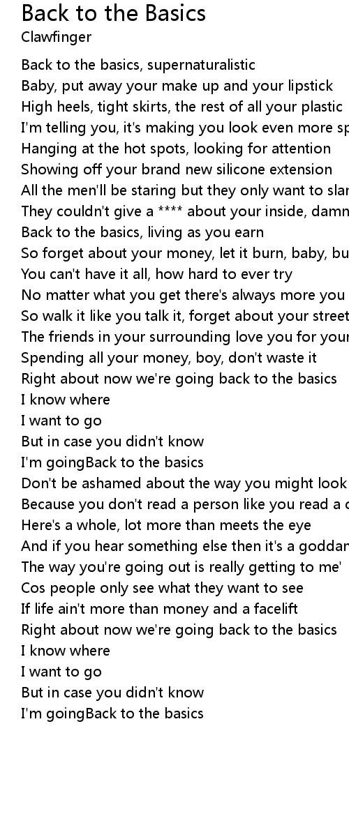 Right about now we're going back to the basics |