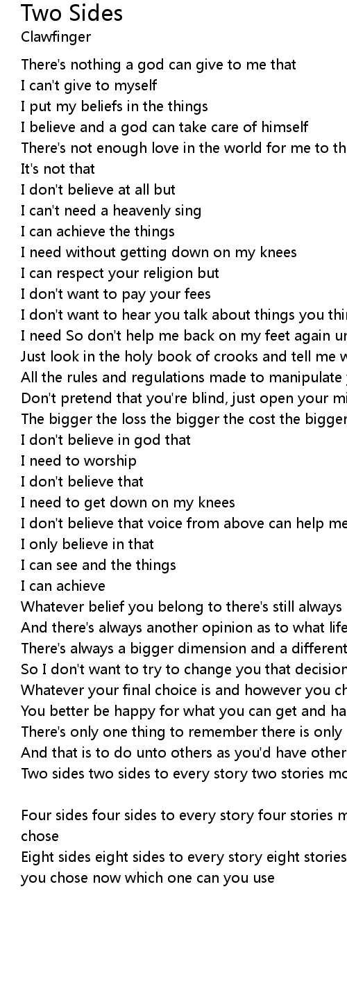 Two sides two sides to every story two stories more makes four new ones to chose