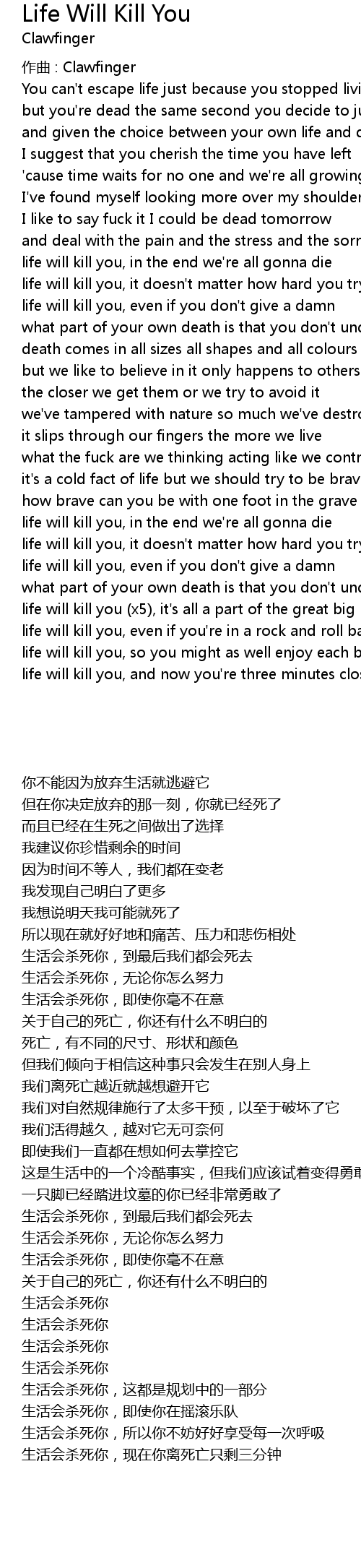 | [03:20.32] | 生活会杀死你,现在你离死亡只剩三分钟 |