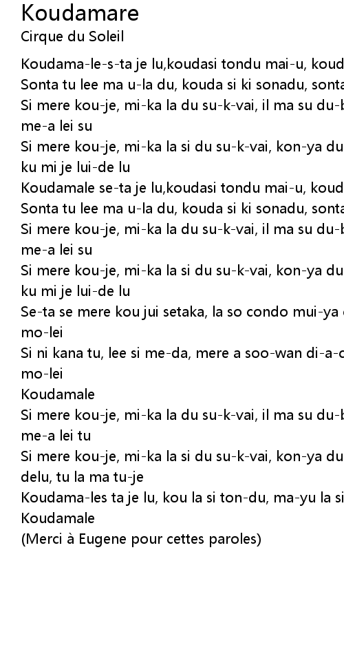 | Koudamales ta je lu, kou la si tondu, mayu la si, ju da ma koudamale | |