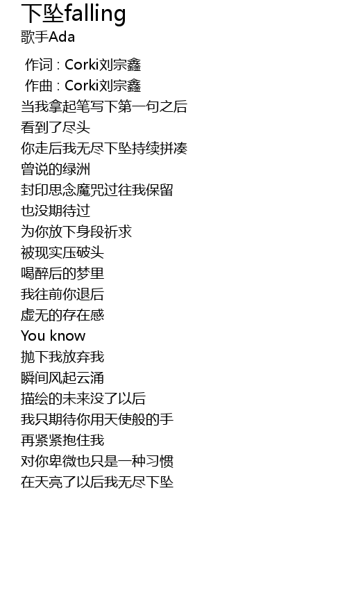 | [00:08.875] | 你走后我无尽下坠持续拼凑 |