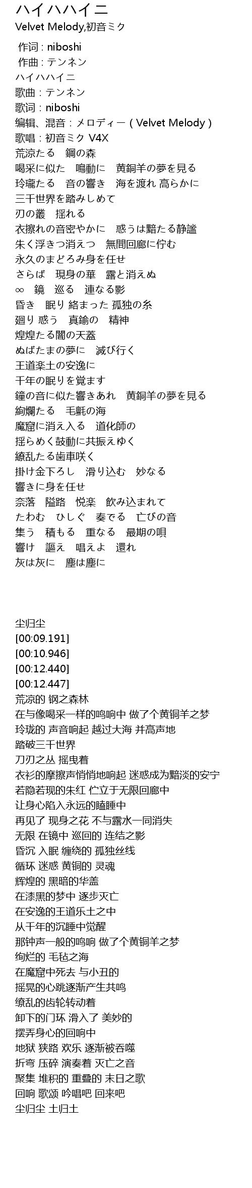 | [00:12.440] | biān jí hùn yīn: Velvet Melody |