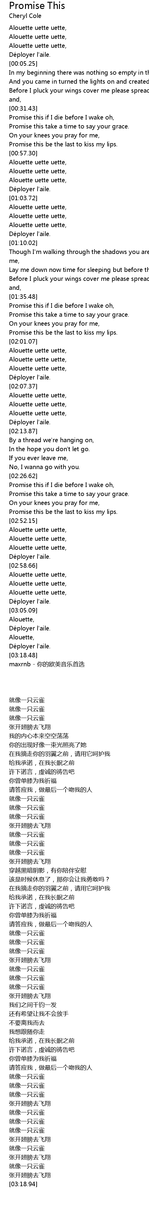 | [00:03.18] | 就像一只云雀 |