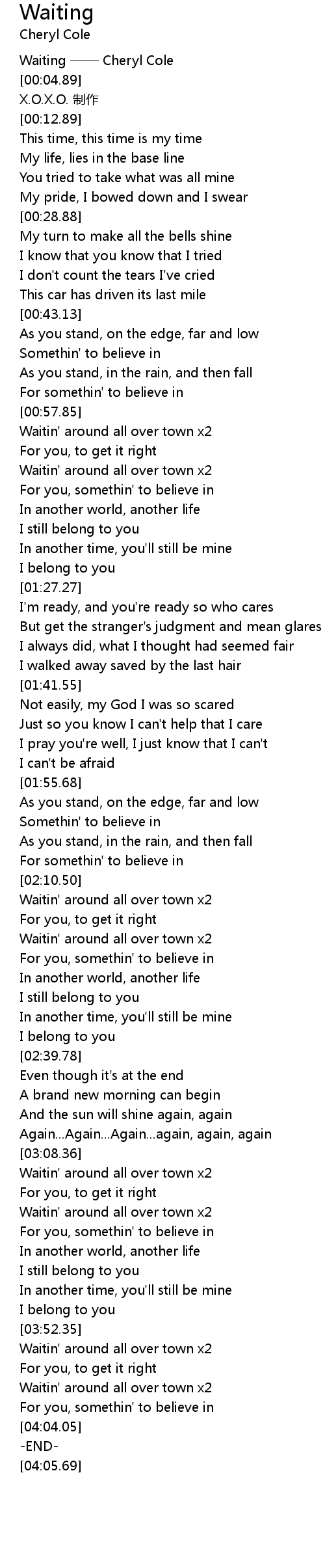 | [00:00.89] | Waiting —— Cheryl Cole |