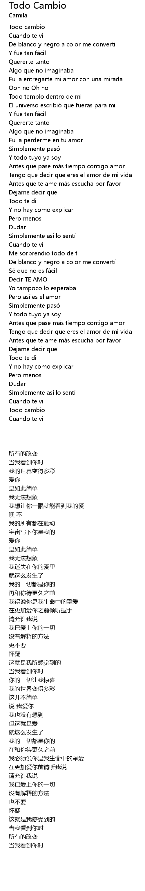 | 歌曲 | Todo Cambio |