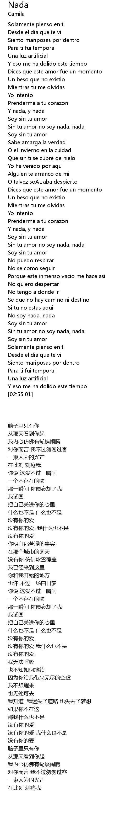 | [00:54.05] | Y nada, y nada |