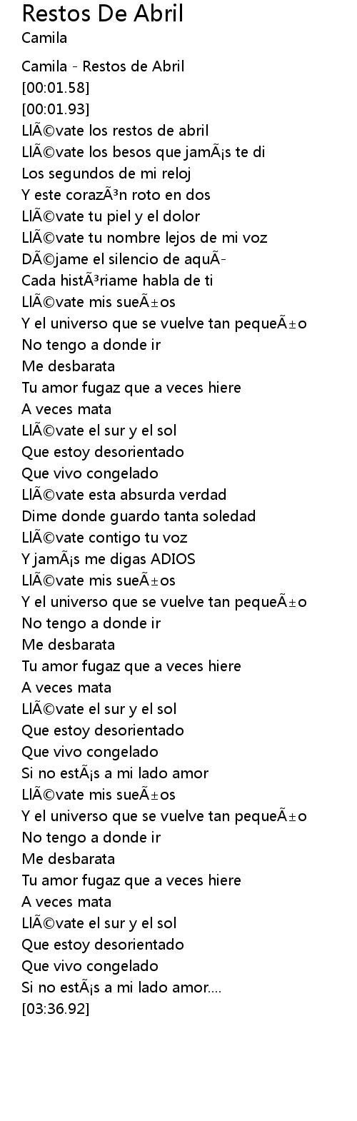 | [01:38.37] | Dime donde guardo tanta soledad |
