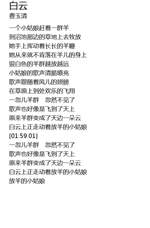 | [01:51.01] | 白云上正走动着放羊的小姑娘 |