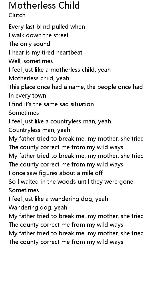 I feel just like a motherless child, yeah |