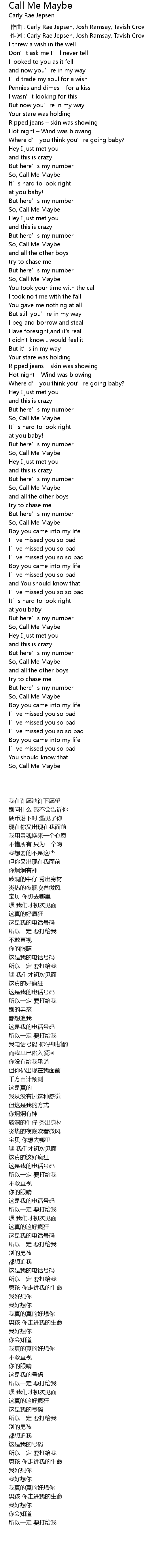 | [00:01.00] | zuò cí : Carly Rae Jepsen, Josh Ramsay, Tavish Crowe |