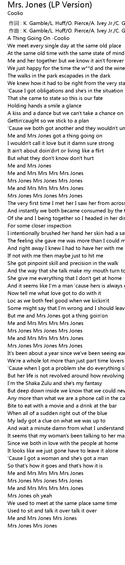 | 歌曲 | Mrs. Jones (LP Version) |