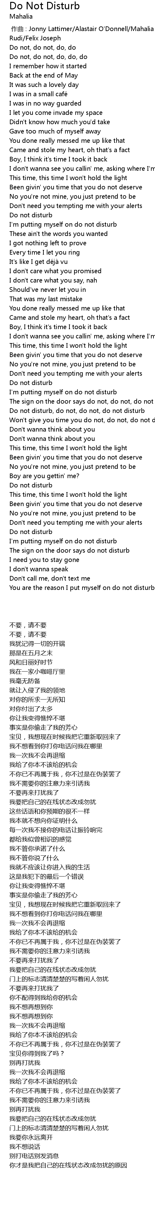 | [02:24.62] | Do not disturb, do not, do not, do not disturb |