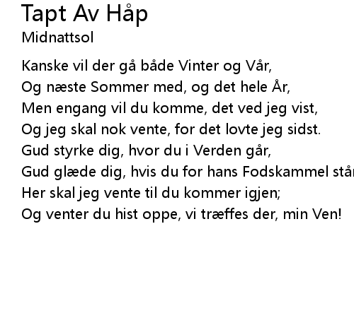 | 歌曲 | Tapt Av Håp |