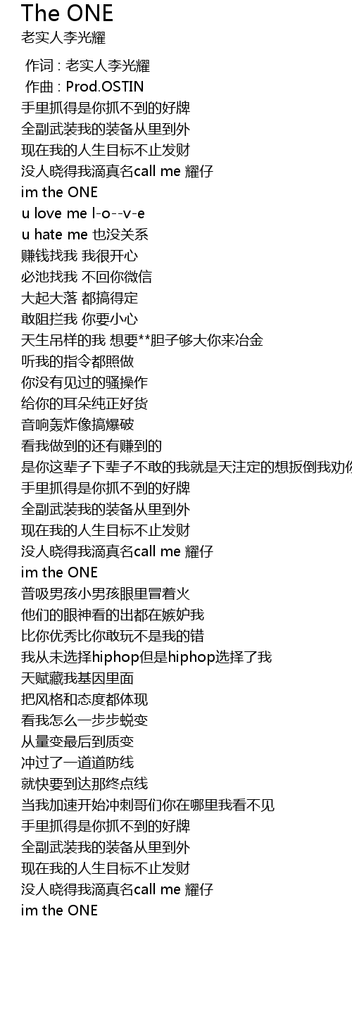 | [00:00.000] | 作词 : 老实人李光耀 |