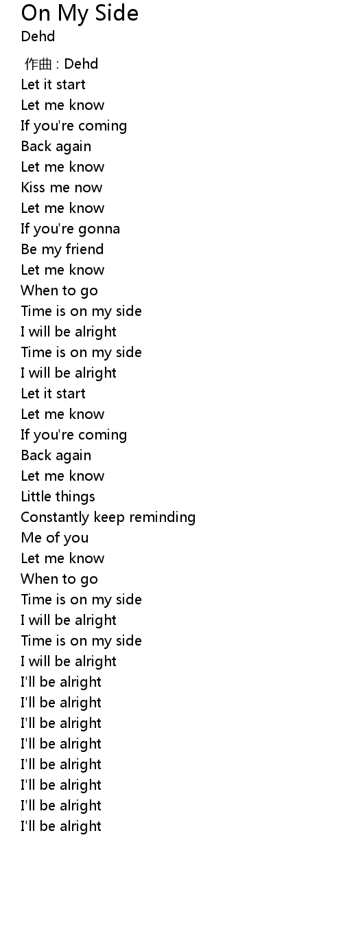 | [01:19.76] | I will be alright |