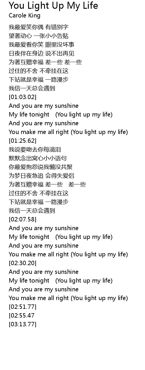 | [03:06.45][02:55.47] | You make me all right You light up my life |