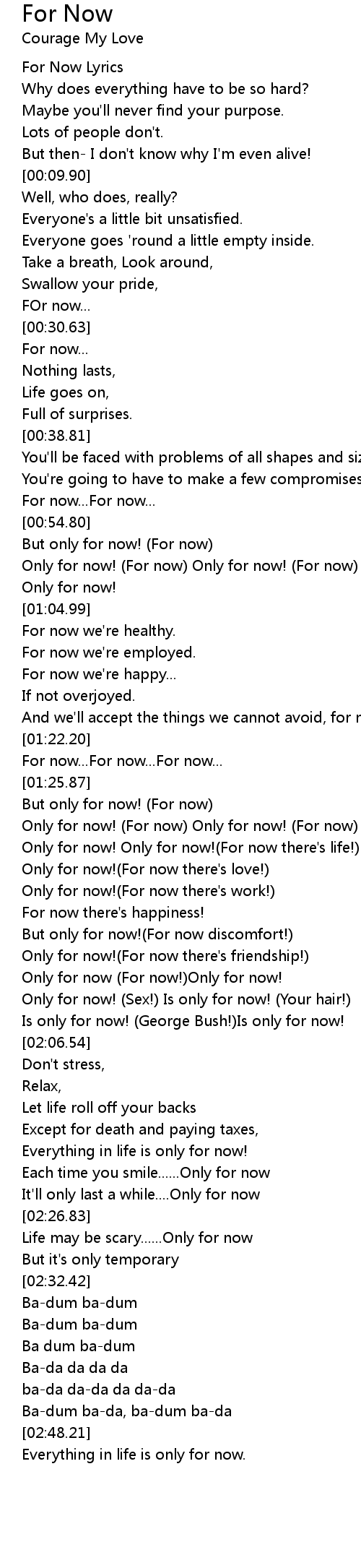 For Now Lyrics |