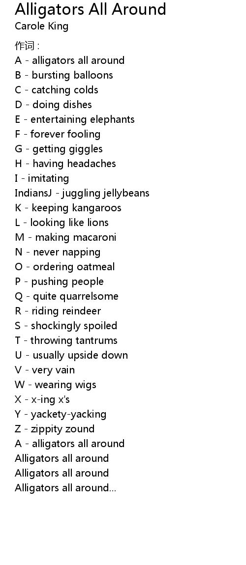 | 歌曲 | Alligators All Around |