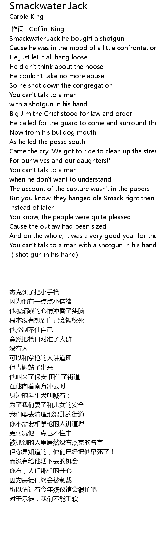 | [00:14.30] | Smackwater Jack he bought a shotgun |