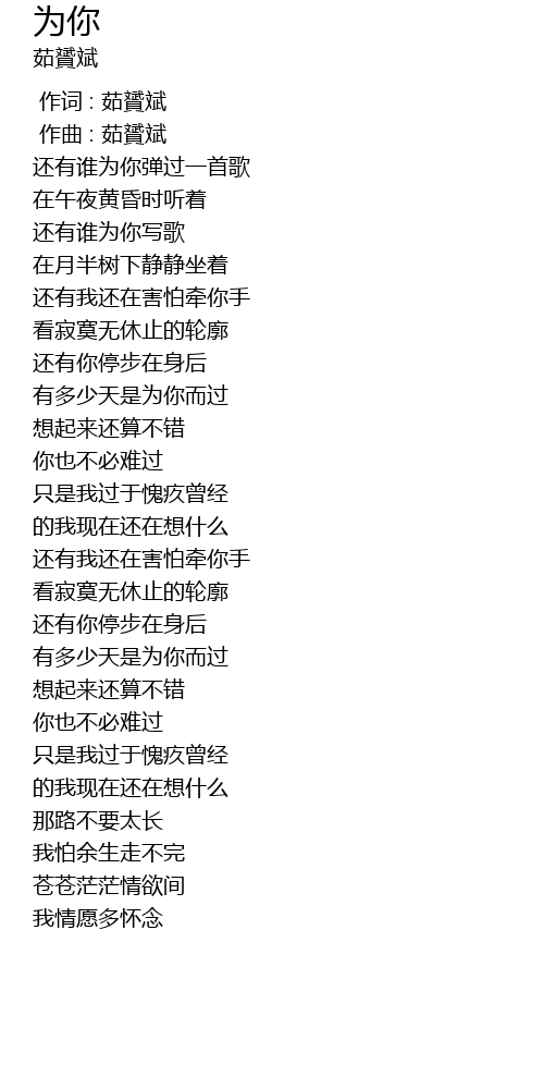 | [00:00.000] | 作词 : 茹贇斌 |