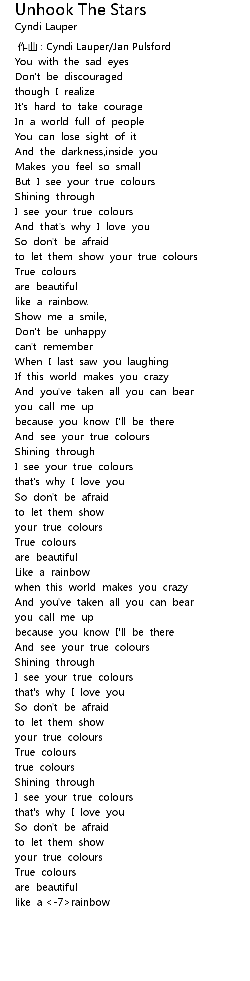 | [02:54.89] | your true colours |